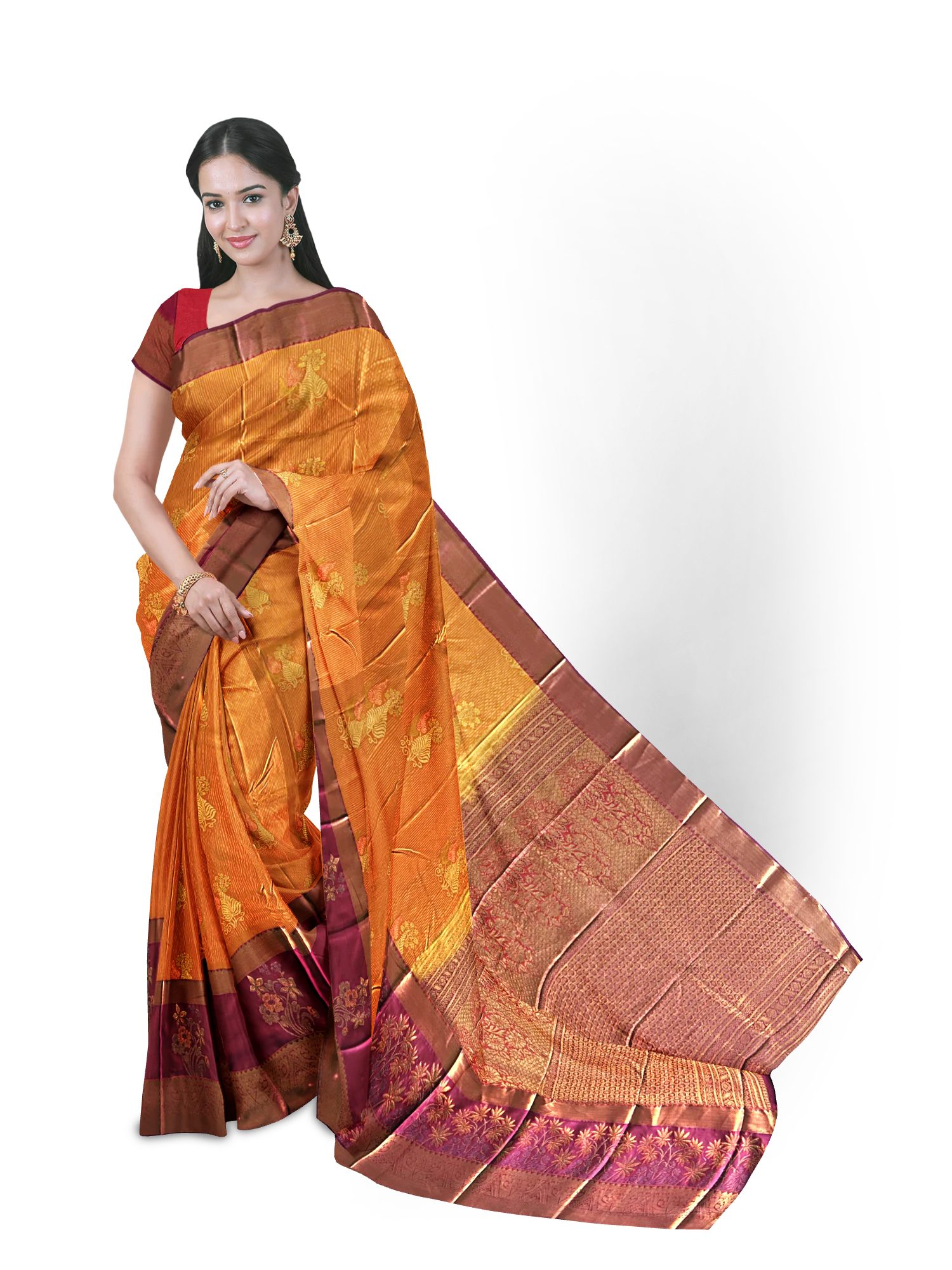 Fabric : Warp : Polyster , Weft : Viscose, Zari : Flora